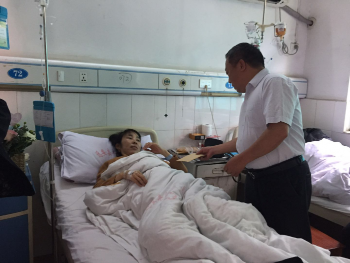 4月27日,陶星陶瓷公司副總經(jīng)理、工會(huì)主席陳成一行來到遠(yuǎn)安縣人民醫(yī)院看望慰問患病職工王能菊,并將籌集到的6000多元愛心善款交到她手中。